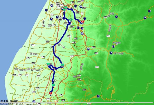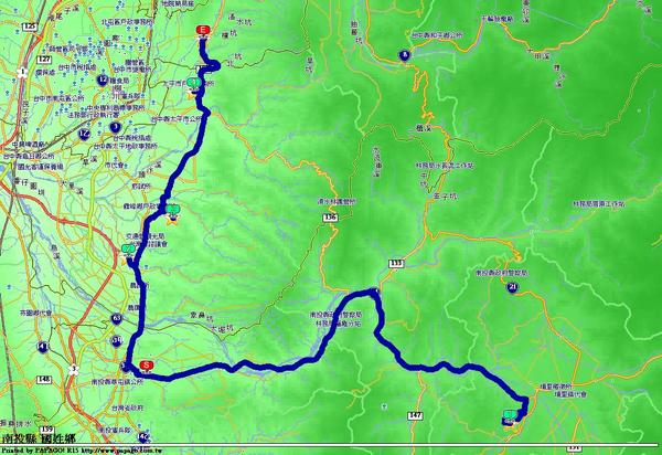 主要路徑:台14 線至埔里再返回、台3 線轉進台中市
